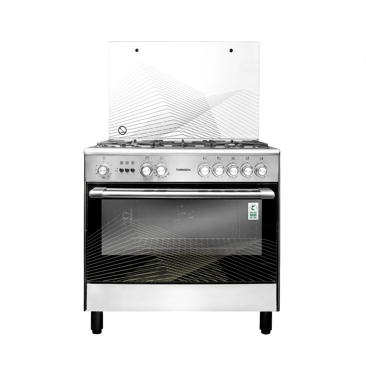 فرن تورنيدو غاز 5 شعلات مقاس 60×90 أمان كامل – ستيل