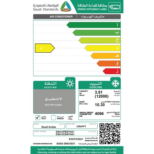 مكيف كرافت سبليت 11500 وحدة – بارد :